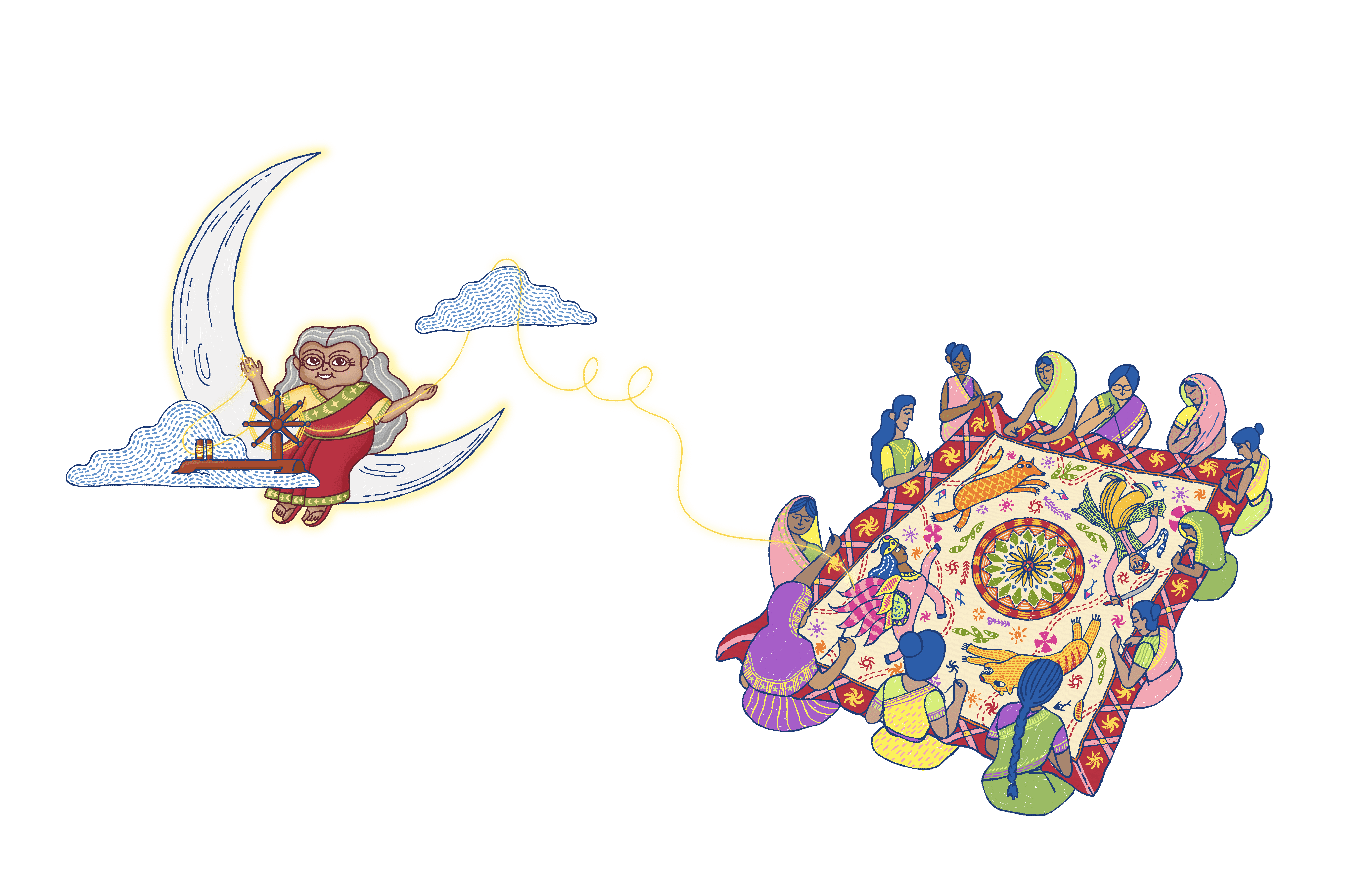 A British Council-funded collaboration between Bok Bok Books and HerStory Foundation in Bangladesh — exploring nakshi kantha embroidery as a living storytelling tradition. The result: a children's illustrated book and 200 hand-embroidered editions, made by artisans in Dhaka.